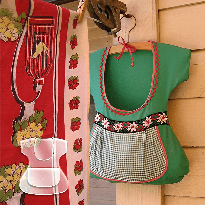 The entire dress is a big storage pocket for your clothespins and the little apron has its own little pocket for even more clothespins.