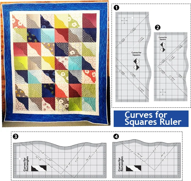 The Curves for Square & Rectangle ruler makes cutting gentle curves from rectangles simple and easy using a standard rotary cutter. These gentle curves - cut from six different sizes of Square & Rectangle – are easy to piece.