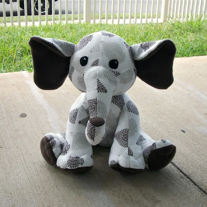 Memory Elephant made from the clothing of a loved one who passed to help keep their memory alive. Can also be made from a child’s clothing to preserve their childhood memories. *Hand made using a huggable patterns pattern.