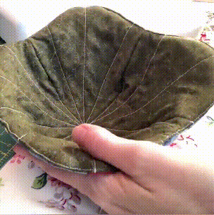 Just two squares of batting and two squares of fabric make one cozy. Simply fold the fabric in quarters and rotary cut around the template. It doesn't get any easier than that!