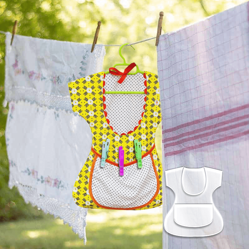 The entire dress is a big storage pocket for your clothespins and the little apron has its own little pocket for even more clothespins.