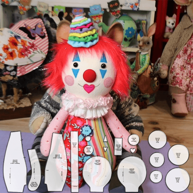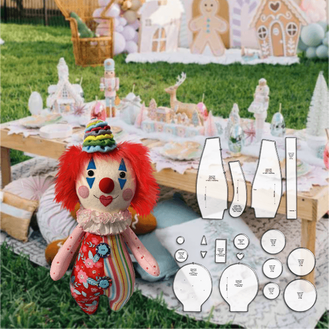 Cute Clown Cuddle Doll Sewing Pattern Ruler Set - With Instructions(18pcs)