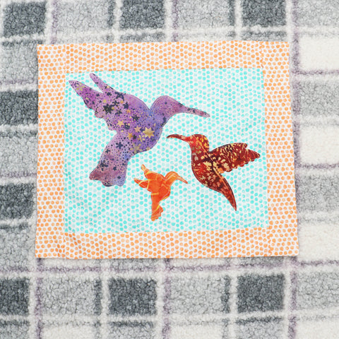 Applique a whole bunch of hummingbird friends. (It could be anything .... a quilt, wall hanging, mug rug, bag, a block, whatever ... just made with fabric and made by you.)