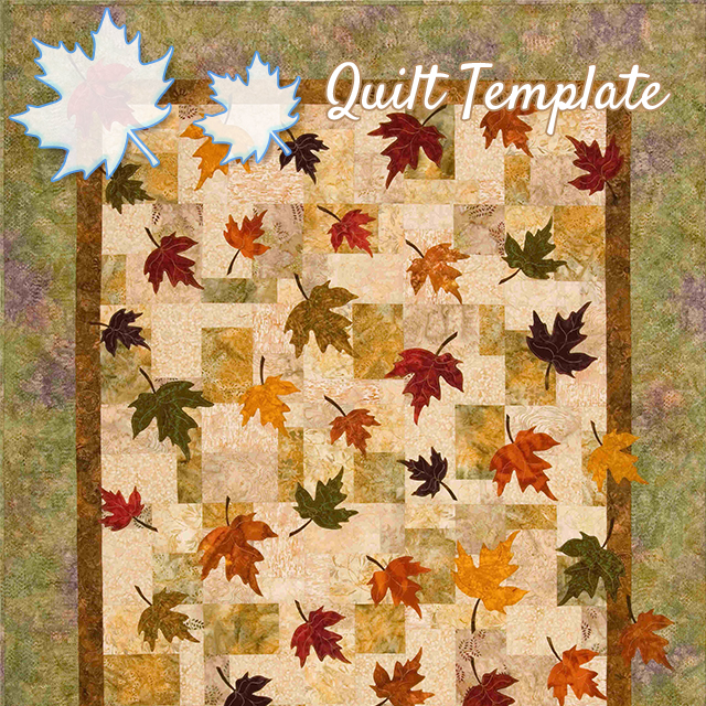 Crisp leaf blocks float on a bold modern background in this simple yet striking fall Templates. Elaborate freemotion quilted motifs or simple straight line quilting with a walking foot are equally effective on this design.