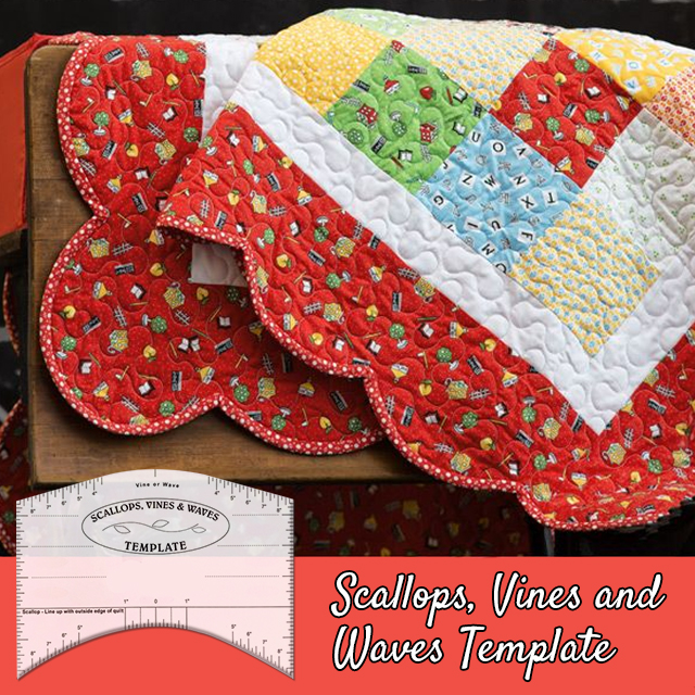 Add a fancy finish to all of your quilts with ease with this handy template. You can make vine and wave borders, waved edges, or scalloped edges.